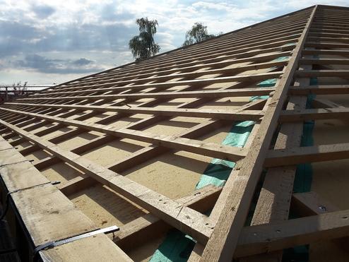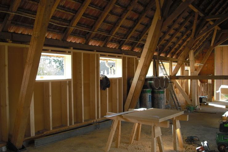 - Dampfbremse und aussteifende Schicht (z. B. OSB – Platten)